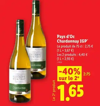 Actuellement en offre chez Lidl : Chevalier de fauvert pays d'oc chardonnay igp ✅ Valable du 16-04 au 22-04.