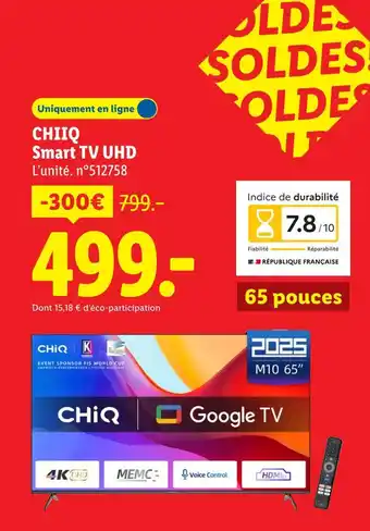 Actuellement en offre chez Lidl : Chiiq smart tv uhd ✅ Valable du 8-01 au 14-01.