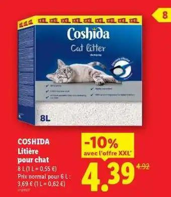 Actuellement en offre chez Lidl : COSHIDA Litière pour chat ✅ Valable du 9-04 au 15-04.