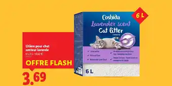 Actuellement en offre chez Lidl : COSHIDA Litière pour chat senteur lavande ✅ Valable du 5-02 au 11-02.