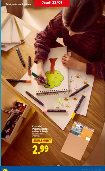 Actuellement en offre chez Lidl : CRELANDO Papier aquarelle ou bloc à dessin ✅ Valable du 22-01 au 26-01.