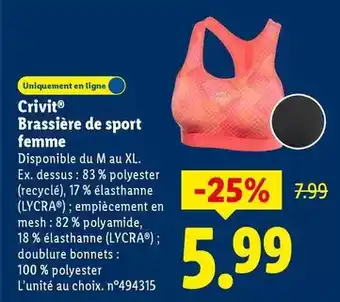 Offre Crivit - brassiere de sport femme chez Lidl