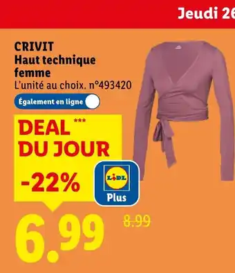Y a-t-il une promotion sur CRIVIT Haut technique femme la semaine prochaine chez Lidl ?