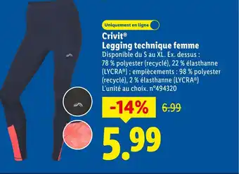Actuellement en offre chez Lidl : CRIVIT Legging technique femme ✅ Valable du 19-02 au 25-02.