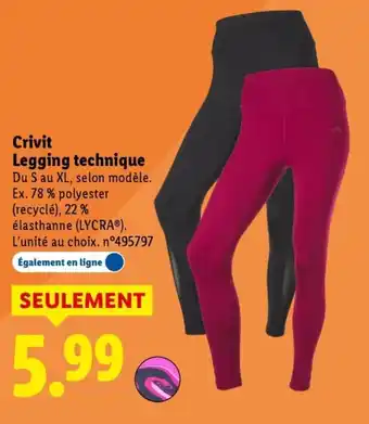 Actuellement en offre chez Lidl : CRIVIT Legging technique ✅ Valable du 8-01 au 14-01.