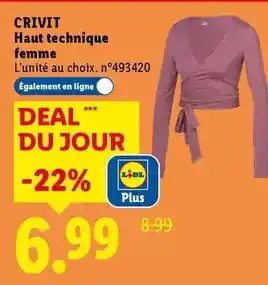 Le prix de l'offre Crivit se trouve également en haut de la page, ainsi que la date à laquelle l'offre est disponible. Vous pouvez également vérifier les prix dans le Catalogue Lidl actuel ou sur le site Internet de Lidl. Les offres vous permettent d'acheter les produits Lidl au prix le plus bas.