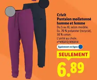 Crivit - pantalon molletonné homme et femme : offres et promos Lidl à découvrir