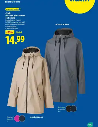 CRIVIT Parka de pluie femme ou homme offres et promotions en ligne chez Lidl