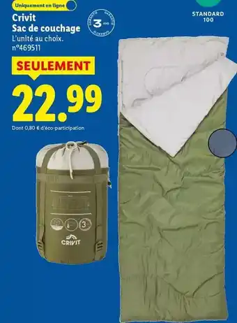 Actuellement en offre chez Lidl : Crivit - sac de couchage ✅ Valable du 16-02 au 19-02.
