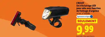 Offre CRIVIT Set d'éclairage LED pour vélo avec fonction de freinage d'urgence chez Lidl