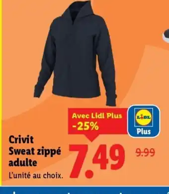 Offre CRIVIT Sweat zippé adulte chez Lidl