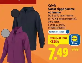 Crivit - sweat zippe homme et femme offres et promotions en ligne chez Lidl