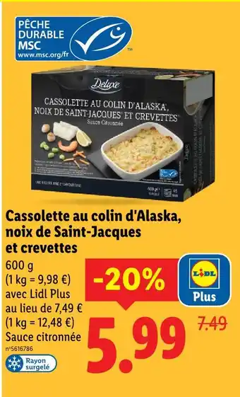 Offre Deluxe cassolette au colin d'alaska, noix de saint-jacques et crevettes chez Lidl