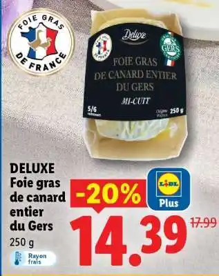 Y a-t-il une promotion sur DELUXE Foie gras de canard entier du Gers la semaine prochaine chez Lidl ?