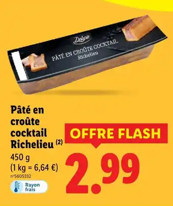 Actuellement en offre chez Lidl : Deluxe pâté en croûte cocktail richelieu ✅ Valable du 12-03 au 18-03.