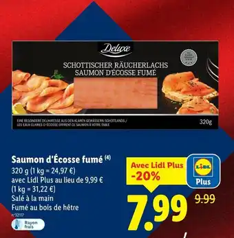 Offre Deluxe saumon d'écosse fumé chez Lidl