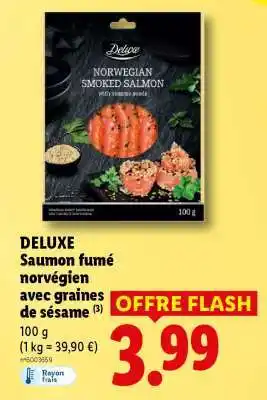 DELUXE Saumon fumé norvégien avec graines de sésame : offres et promos Lidl à découvrir