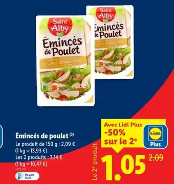 Le prix de l'offre Émincés de poulet se trouve également en haut de la page, ainsi que la date à laquelle l'offre est disponible. Vous pouvez également vérifier les prix dans le Catalogue Lidl actuel ou sur le site Internet de Lidl. Les offres vous permettent d'acheter les produits Lidl au prix le plus bas.