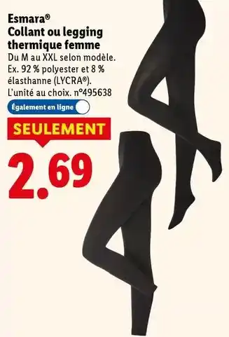Actuellement en offre chez Lidl : Esmara - collant ou legging thermique femme ✅ Valable du 12-01 au 15-01.