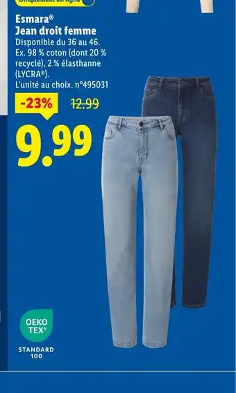 Actuellement en offre chez Lidl : ESMARA Jean droit femme ✅ Valable du 22-01 au 28-01.
