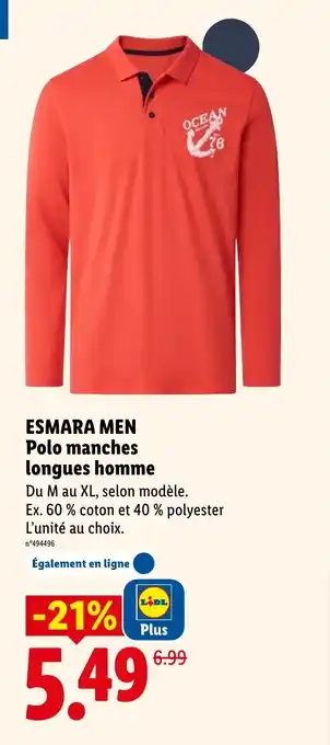 Actuellement en offre chez Lidl : ESMARA MEN Polo manches longues homme ✅ Valable du 19-03 au 25-03.