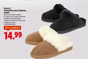 Actuellement en offre chez Lidl : Esmara pantoufles peau d’agneau adulte ✅ Valable du 15-01 au 21-01.