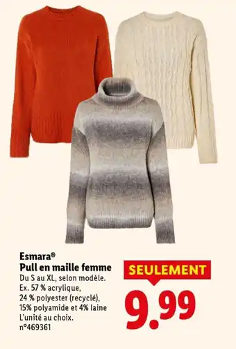 Actuellement en offre chez Lidl : ESMARA Pull en maille femme ✅ Valable du 9-03 au 12-03.