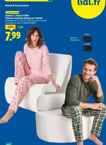 Actuellement en offre chez Lidl : Esmara pyjama en polaire femme pyjama en polaire femme ou homme ✅ Valable du 3-01 au 7-01.