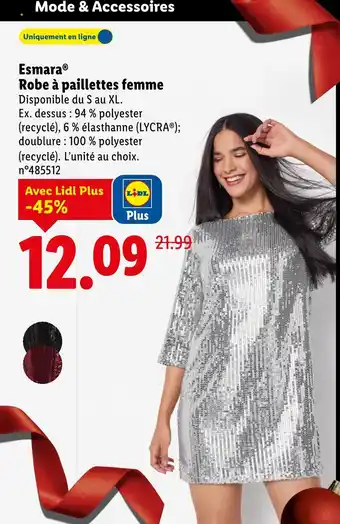 Actuellement en offre chez Lidl : Esmara robe à paillettes femme ✅ Valable du 18-12 au 24-12.