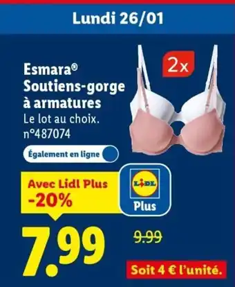 Actuellement en offre chez Lidl : ESMARA Soutiens-gorge à armatures ✅ Valable du 26-01 au 29-01.