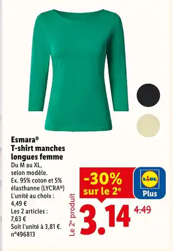 Actuellement en offre chez Lidl : Esmara t-shirt manches longues femme ✅ Valable du 5-03 au 11-03.