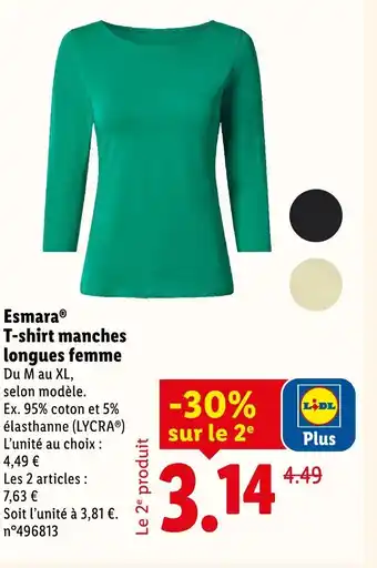Actuellement en offre chez Lidl : ESMARA T-shirt manches longues femme ✅ Valable du 9-03 au 11-03.