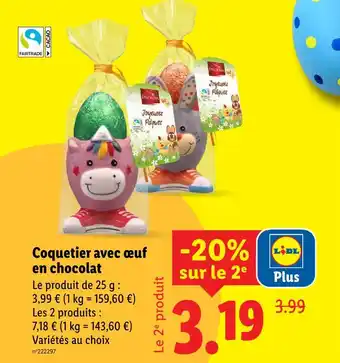 Actuellement en offre chez Lidl : Favorina coquetier avec œuf en chocolat ✅ Valable du 5-03 au 11-03.