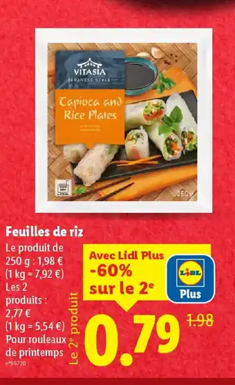 Le prix de l'offre Feuilles de riz se trouve également en haut de la page, ainsi que la date à laquelle l'offre est disponible. Vous pouvez également vérifier les prix dans le Catalogue Lidl actuel ou sur le site Internet de Lidl. Les offres vous permettent d'acheter les produits Lidl au prix le plus bas.