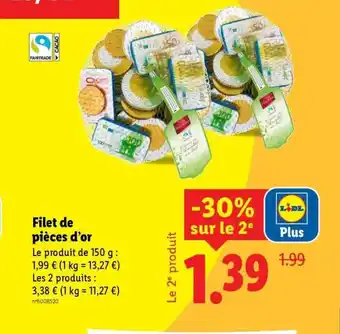 En plus de l'offre Filet de pièces d'or, Lidl propose une large gamme de produits. Consultez le Catalogue Lidl hebdomadaire pour découvrir les meilleures offres et promotions. En plus de Filet de pièces d'or, il y a aussi : Favorina - filet de pièces d'or, Dunes d'or & Viande bovine : faux- filet** à griller la caissette de 4 pièces minimum.