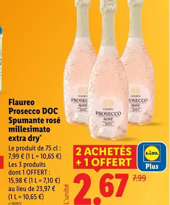 Actuellement en offre chez Lidl : Flaureo Prosecco DOC Spumante rosé millesimato extra dry ✅ Valable du 19-03 au 25-03.