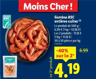 En plus de l'offre Gambas ASC entières cuites, Lidl propose une large gamme de produits. Consultez le Catalogue Lidl hebdomadaire pour découvrir les meilleures offres et promotions. En plus de Gambas ASC entières cuites, il y a aussi : Gambas entières crues, Gambas entières crues décongelées & Gambas entières crues décongelées.
