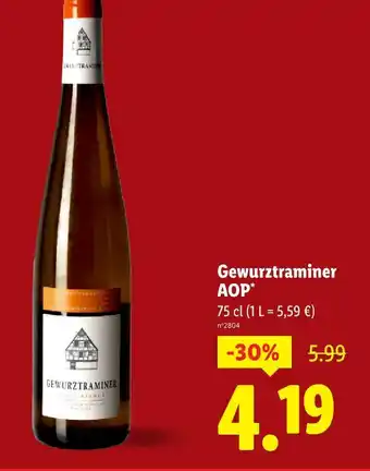 Actuellement, Gewurztraminer aop est en promotion chez Lidl. Toutes les informations utiles comme le prix, les conditions et la durée de validité sont affichées sur cette page. Consultez également les promotions similaires pour Gewurztraminer aop, afin de faire le meilleur choix. La promo Gewurztraminer aop est valable du 29-01-2026 au 04-02-2026. Si elle est expirée, regardez les autres offres équivalentes. Vous pouvez aussi suivre cette catégorie de produit pour être alerté lorsqu’une nouvelle promotion Gewurztraminer aop apparaît chez Lidl.Questions fréquemment posées au sujet de Gewurztraminer aop