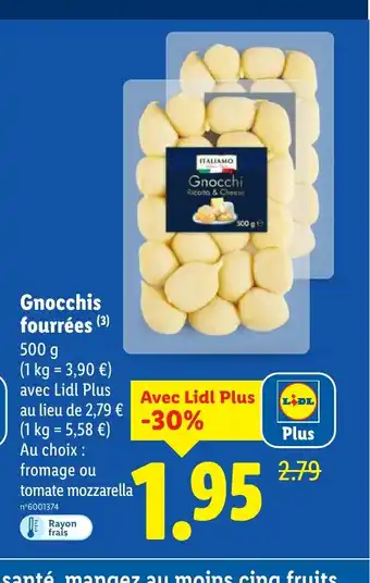En plus de l'offre Gnocchis fourrées, Lidl propose une large gamme de produits. Consultez le Catalogue Lidl hebdomadaire pour découvrir les meilleures offres et promotions. En plus de Gnocchis fourrées, il y a aussi : Gnocchis fourrées, Italiamo - gnocchis fourrées & 4 crepes fourrees.