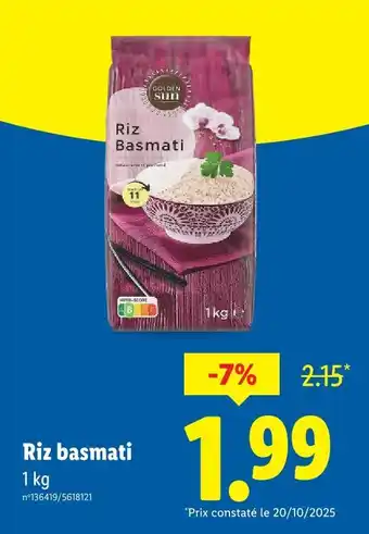 Offre Golden sun riz basmati chez Lidl