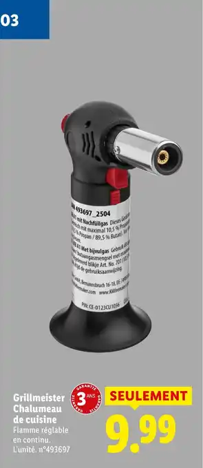 Actuellement en offre chez Lidl : Grillmeister Chalumeau de cuisine ✅ Valable du 26-02 au 2-03.