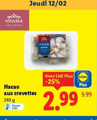 Actuellement, Hacao aux crevettes est en promotion chez Lidl. Toutes les informations utiles comme le prix, les conditions et la durée de validité sont affichées sur cette page. Consultez également les promotions similaires pour Hacao aux crevettes, afin de faire le meilleur choix. La promo Hacao aux crevettes est valable du 12-02-2026 au 18-02-2026. Si elle est expirée, regardez les autres offres équivalentes. Vous pouvez aussi suivre cette catégorie de produit pour être alerté lorsqu’une nouvelle promotion Hacao aux crevettes apparaît chez Lidl.Questions fréquemment posées au sujet de Hacao aux crevettes