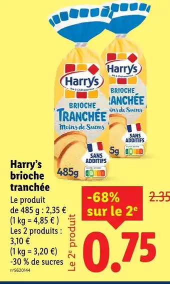 En plus de l'offre Harrys brioche tranchée moins de sucres, Lidl propose une large gamme de produits. Consultez le Catalogue Lidl hebdomadaire pour découvrir les meilleures offres et promotions. En plus de Harrys brioche tranchée moins de sucres, il y a aussi : HARRYS brioche tranchée, HARRYS Brioche tranchée allégée en sucre & Brioche tranchée.