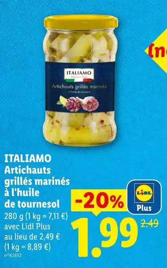 ITALIAMO Artichauts grillés marinés à l'huile de tournesol offres et promotions en ligne chez Lidl