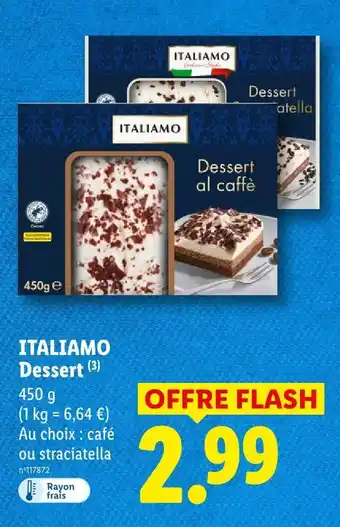 Actuellement en offre chez Lidl : Italiamo dessert al caffè ✅ Valable du 16-04 au 22-04.