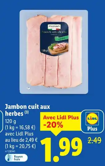 Offre Italiamo jambon cuit aux herbes chez Lidl