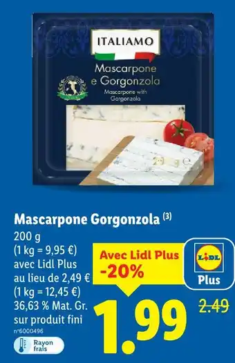 Italiamo mascarpone gorgonzola : offres et promos Lidl à découvrir