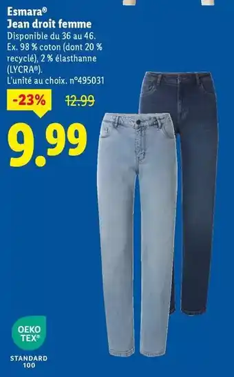 Actuellement en offre chez Lidl : Jean droft femme ✅ Valable du 20-01 au 28-01.
