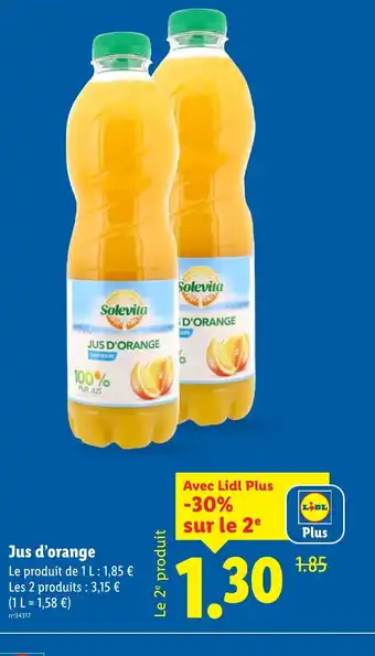Jus d'orange bénéficie actuellement d'une réduction chez Lidl. Vous trouverez ici toutes les infos utiles sur les prix, la durée de validité et les conditions de l’offre. Pensez à consulter aussi d'autres offres et promotions similaires pour Jus d'orange afin d’acheter toujours au bon prix. La promo Jus d'orange est valable du 22-01-2026 au 28-01-2026. Offre terminée ? Pas de souci. D'autres offres sur ces produits sont peut-être déjà disponibles. Vous pouvez suivre cette catégorie de produits pour rester informé en cas de nouvelle promotion Jus d'orange chez Lidl. En comparant les offres, vous êtes sûr d’acheter au prix le plus bas possible.Questions fréquemment posées au sujet de Jus d'orange