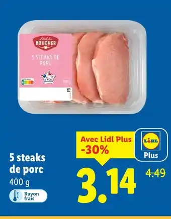 Actuellement en offre chez Lidl : L'étal du boucher 5 steaks de porc ✅ Valable du 22-01 au 28-01.